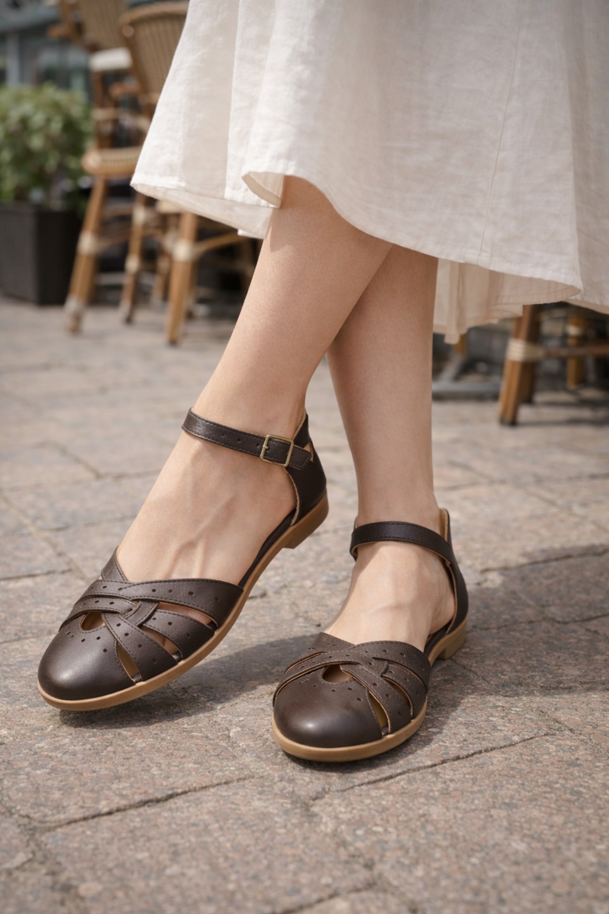 Marsu Hakiki Deri Kahve Kadın Sandalet ile adımlarınızda konfor ve şıklığı bir arada yaşayın. Yaz aylarının vazgeçilmezi olan bu sandalet, hem günlük kullanım hem de özel anlarınız için ideal bir seçimdir.